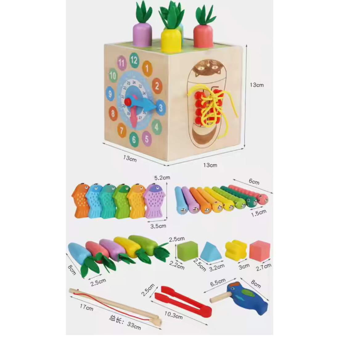 Be the first to review “Mara Bommai® 8-in-1 Wooden Montessori Activity Cube Toy for Toddlers – Fishing, Carrot Harvest, Shape Sorter, Worm Catching, Bead Maze – Educational Learning Toy for Kids Age 2+”