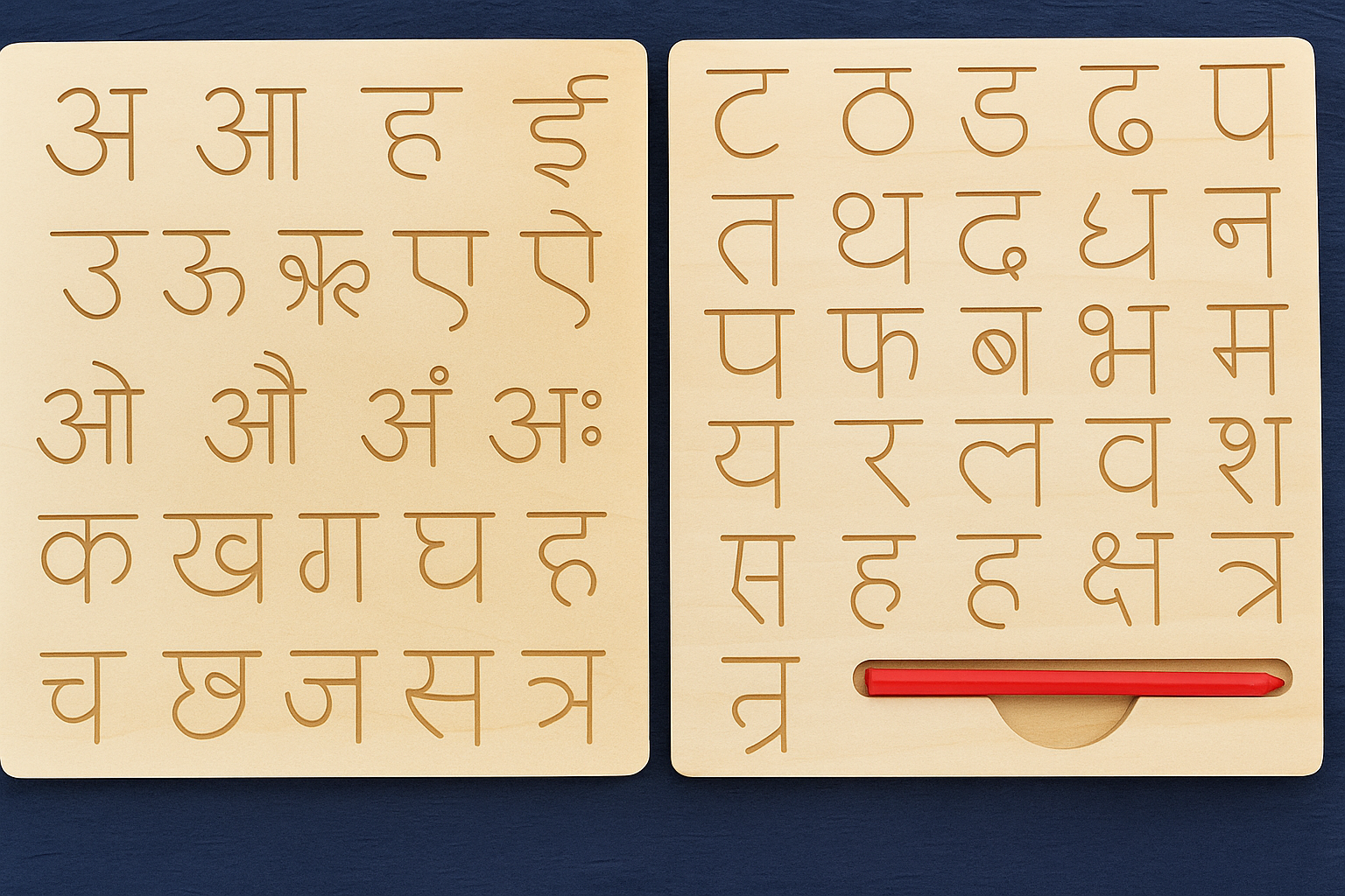 Be the first to review “Mara Bommai Hindi Alphabet Wooden Tracing Board – 2-in-1 Double-Sided Learning Slate”